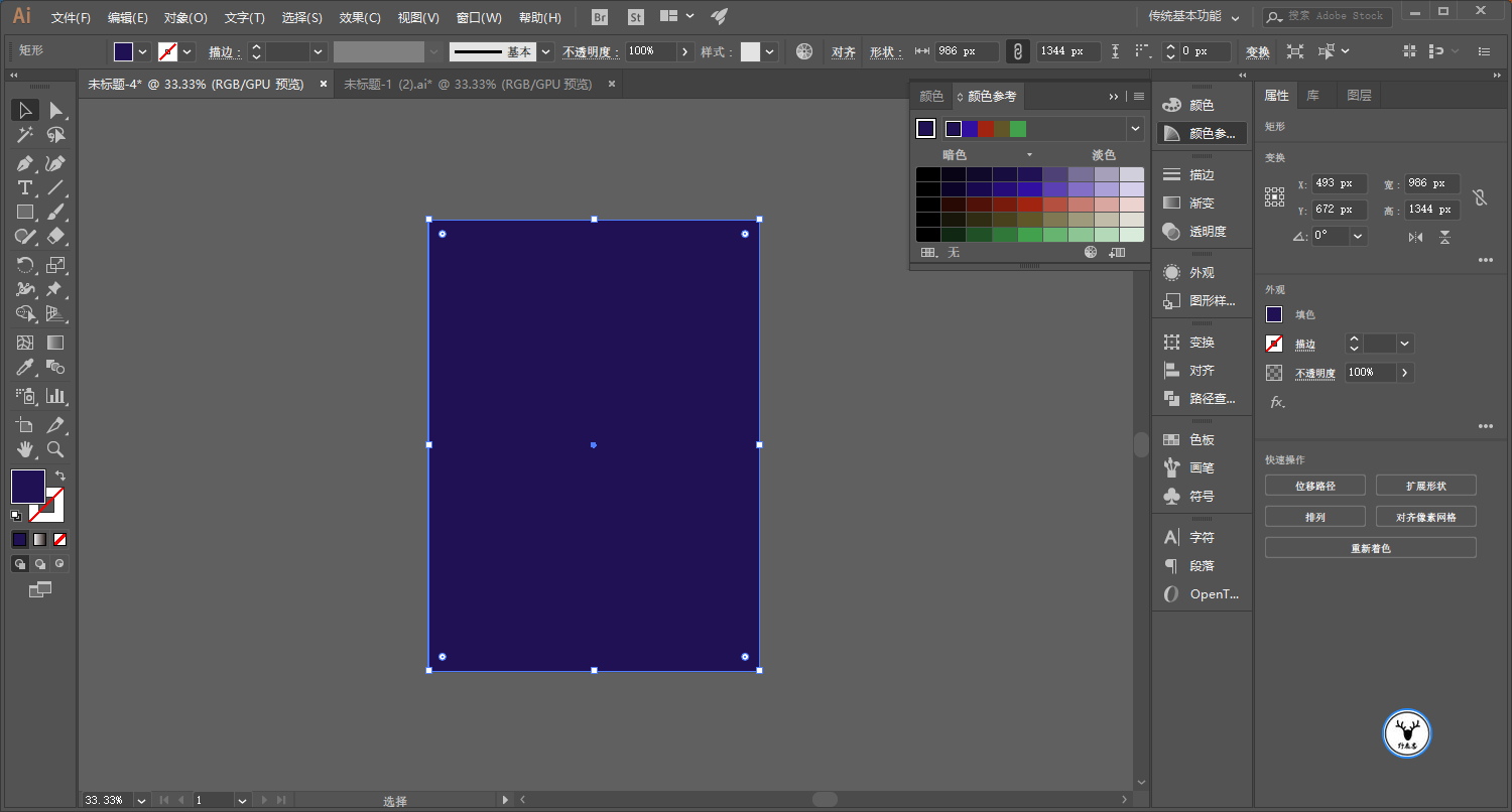 同样先做参考线,用矩形工具画一个和画板同样大小的矩形,填充自己想要的颜色以后,Ctrl+2锁定当背景: