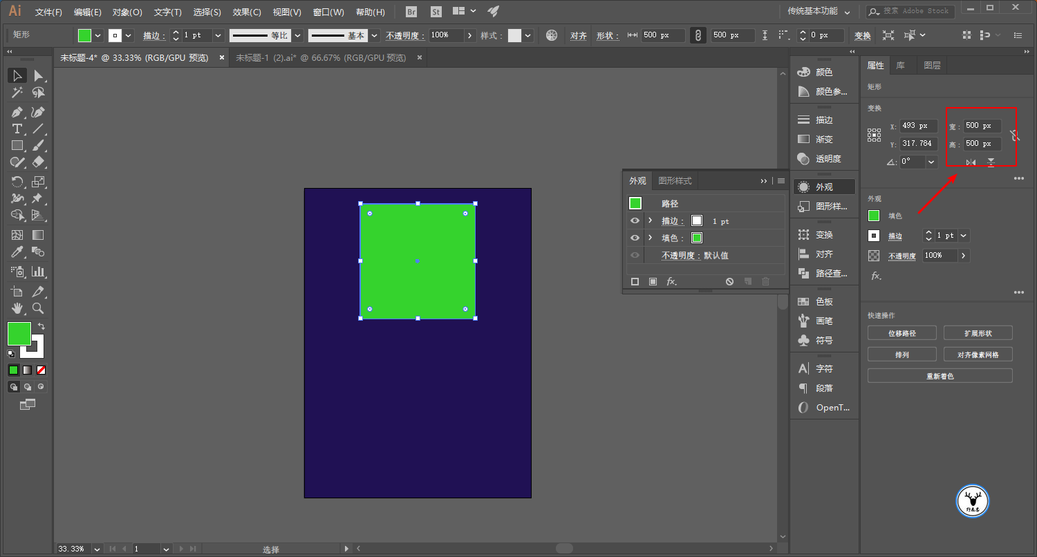 再画一个正方形,颜色随意,大小大家看着办吧: