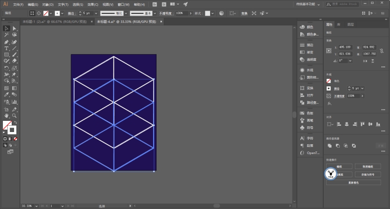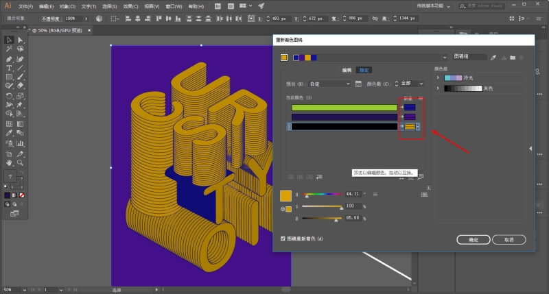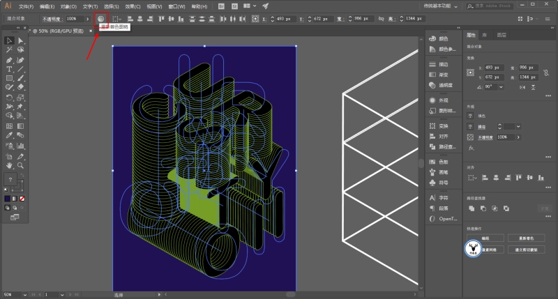 另外再说一下如果你想要修改颜色的话,可以将对象全选以后,点击重新着色图稿: