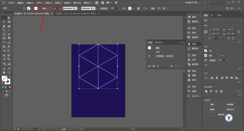 为了方便观察可以扩展以后将描边改个颜色,并且适当加粗: