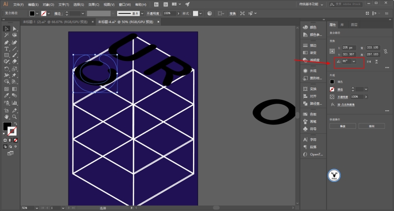 然后再对比着参考线去摆放文字的位置,同时你还可以调整文字旋转的角度: