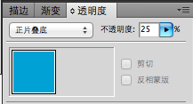 1、制作一个正方形,并且设置透明度调为25,把左边的模式调为正片叠底。
