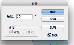 2、选中这个正方形,点击旋转工具,在正方形的正中心,按住alt键再左键点击跳出的对话框选择旋转10°-复制。