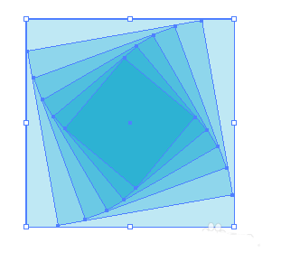 6、重复以上操作,直至出现一个渐变的正方形。最后选中全部的正方形,编组。使用选择工具旋转调整图形的倾斜位置。