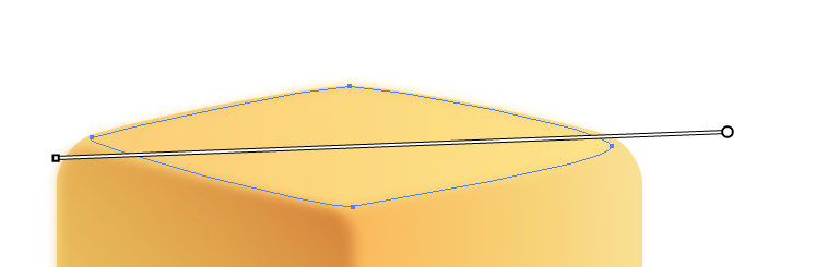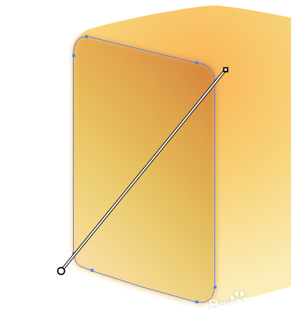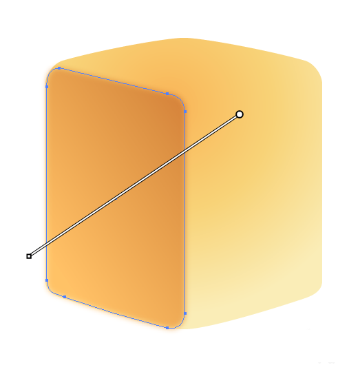 6、将这个矩形倾斜角度,放置在合适的位置,作为果冻的阴影,渐变角度为深色的颜色在右上角。