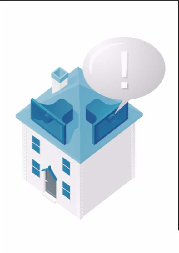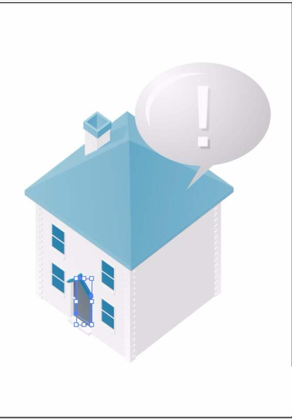 4、用灰色的渐变填充住宅的墙壁,用蓝色的渐变填充屋顶,用灰白色的渐变填充对话框里面的惊叹号。
