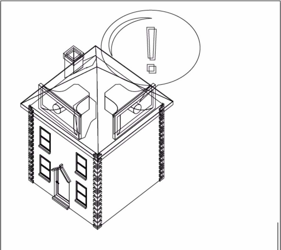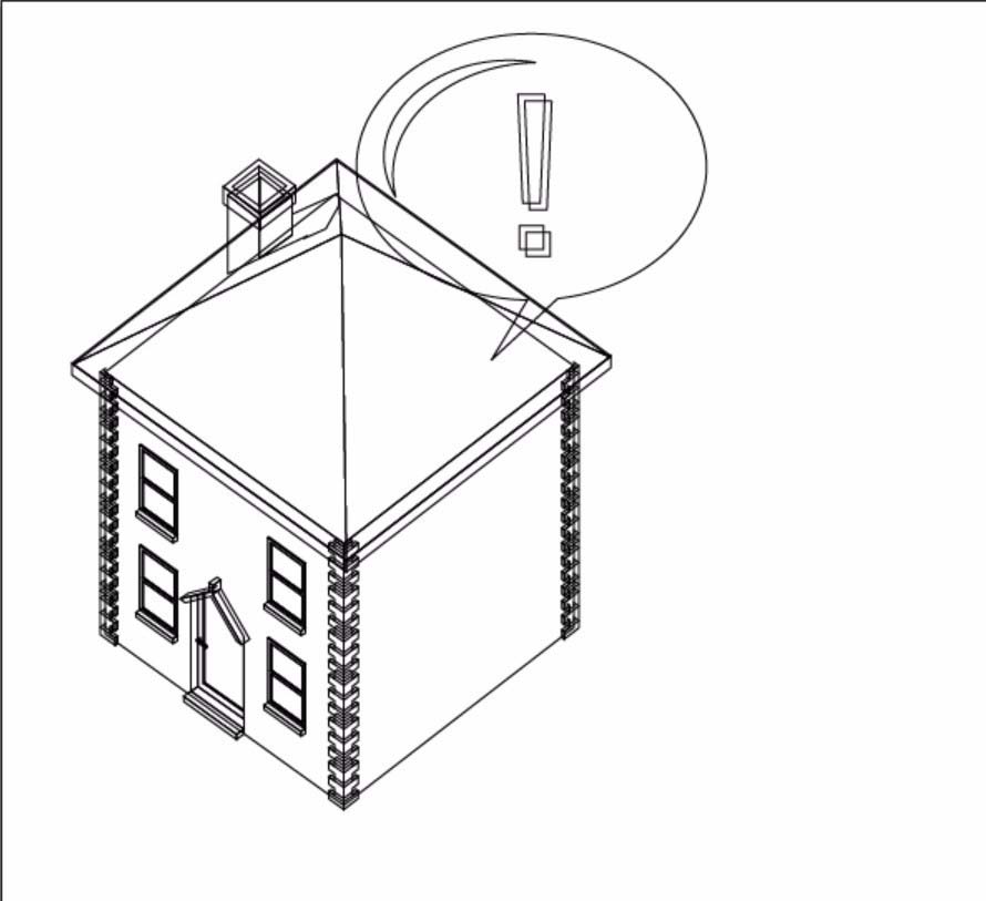 1、用钢笔画出这个住宅的屋顶与对话框,墙壁等元素。