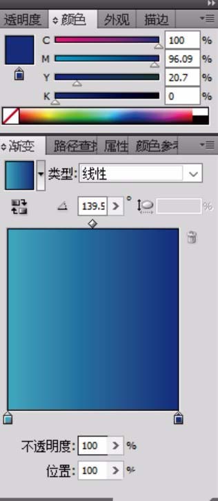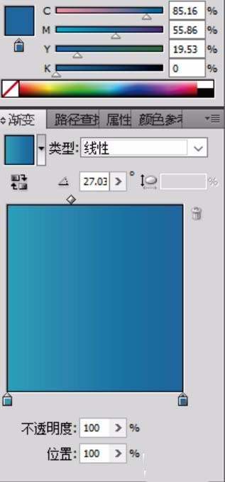 6、用蓝色的渐变填充喇叭,不断的调整渐变的角度,从而让喇叭的各个侧面有着差异化的色调,完成住宅卡通图片设计。