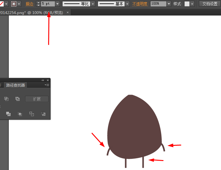 2、再选择钢笔工具,勾出如下的路径,描边改为5pt,如图所示