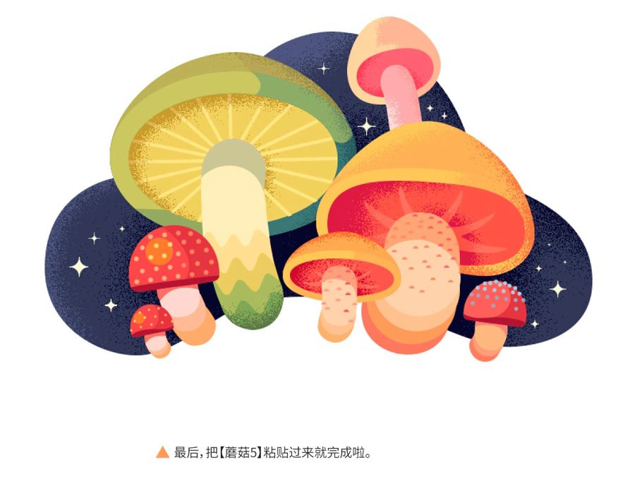 教程结束,以上就是关于AI巧用色彩和颗粒绘制立体感十足的蘑菇插画的全部内容,希望大家看完有所收获