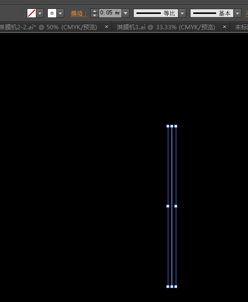 其次我们用直线或钢笔工具画一条垂直的线(按住shift向下拖动),这是描边为白色,描边大小为0.05mm。