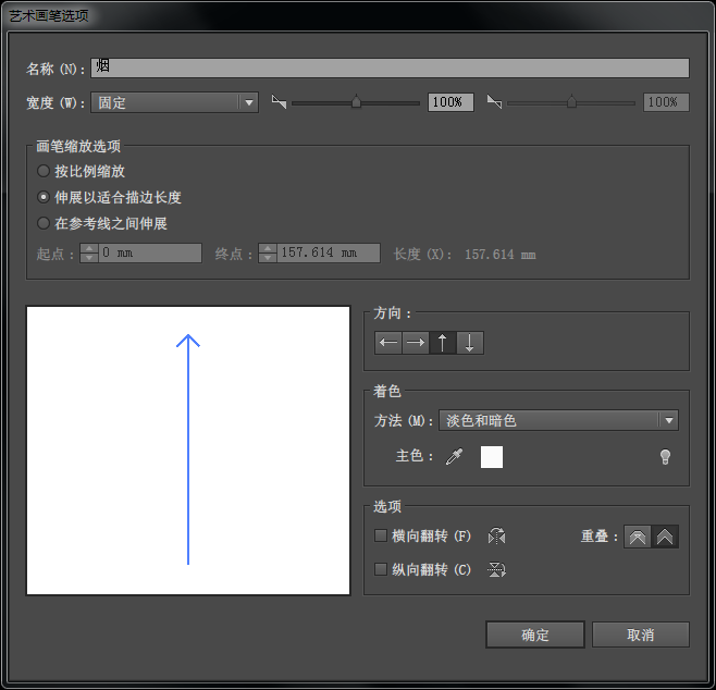 艺术画笔设置如下,方向选择向上,着色选择淡色和暗色。