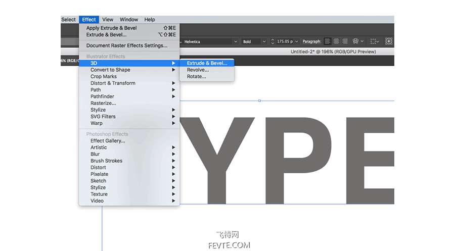 给文本一个填充灰色,效果> 3D>凸出和斜角
