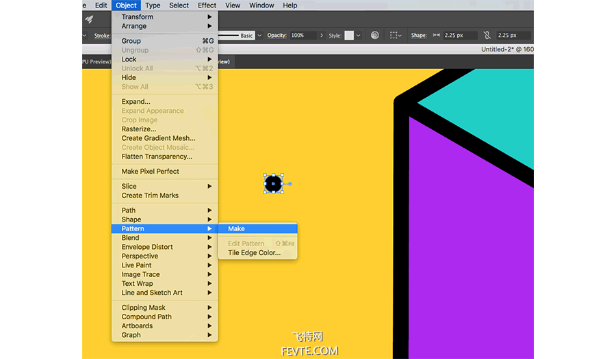 画一个黑色的圆,大小3px,添加"对象">"图案">"建立"。