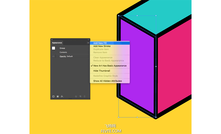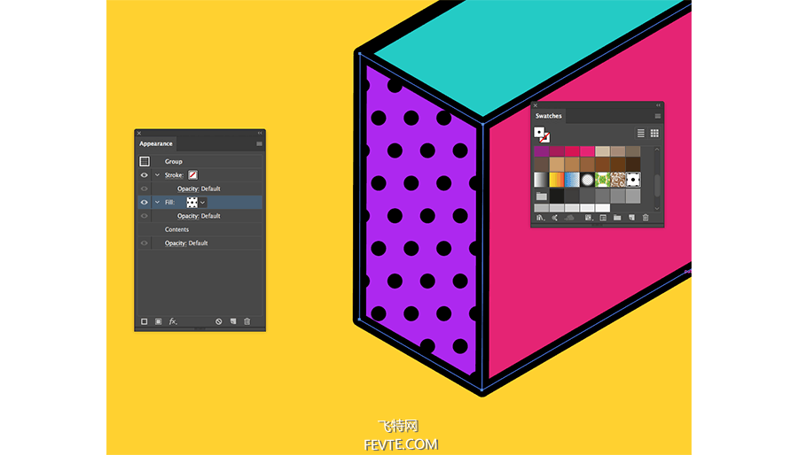 选择其中一个面并从"窗口-外观"面板的菜单中单击"添加新填充"选项,叠加图案填充。