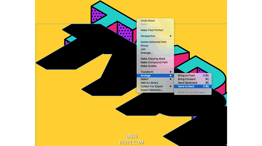 向下移动此新形状,直到与3D文本的底部对齐,然后右键排列>置于底层