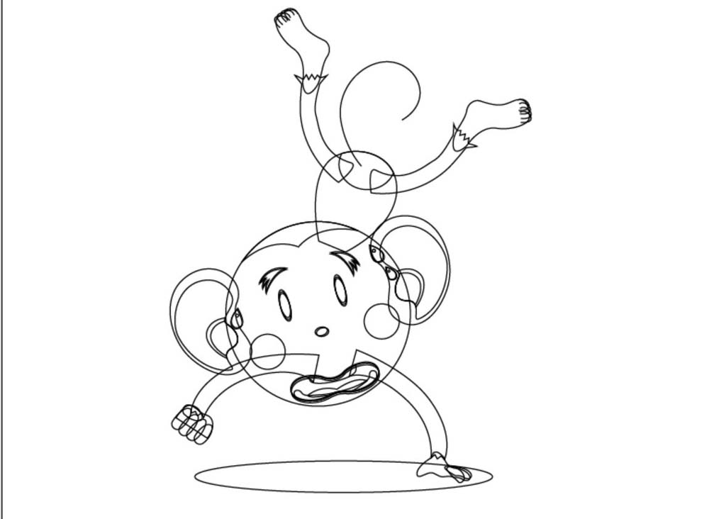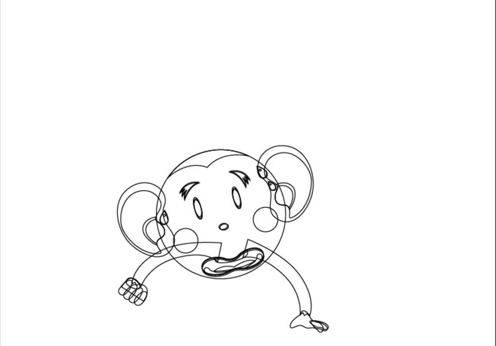 2、继续绘制出猴子的眼晴、鼻子、嘴巴与双手的路径。