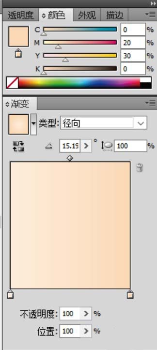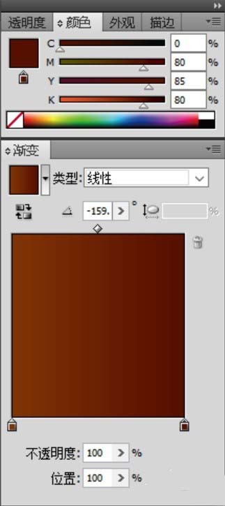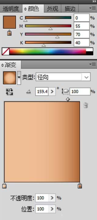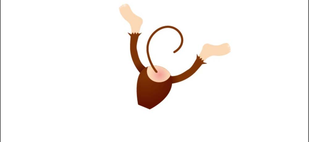 4、用暗棕色的渐变填充猴子的身体路径,用浅粉色的渐变填充猴子的屁股路径,用暗棕色对于猴子的尾巴进行描边,用淡棕色的渐变填充猴子的脚掌。