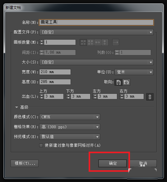 1、Ctrl + N 新建文档,设置其属性,如图所示: