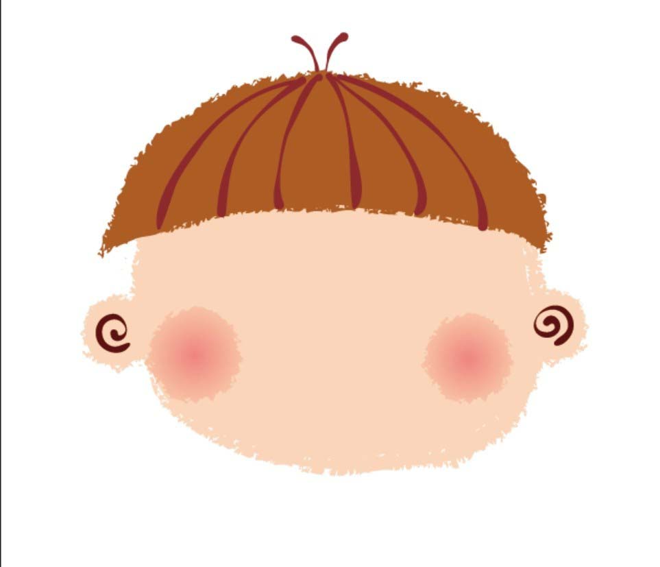 5、用粉色的渐变与粉红色的渐变分别填充男孩的脸蛋与红晕,用深棕色填充耳朵的内层路径。