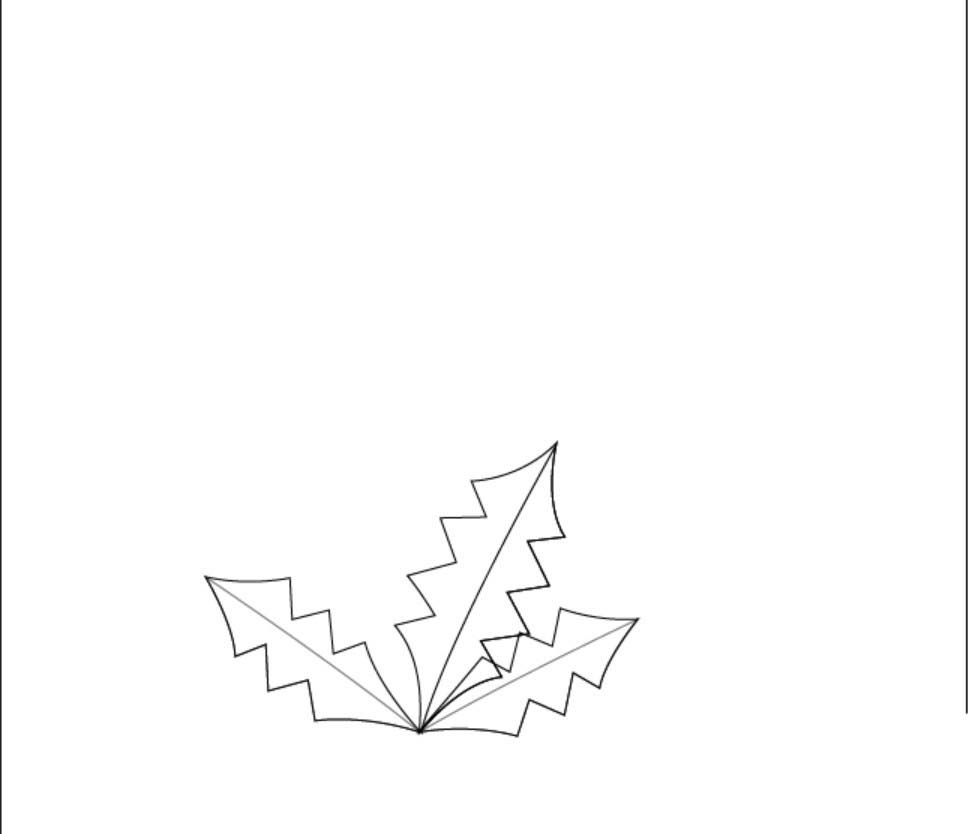 1、使用钢笔画出小花的三片大叶子,每一片都不相同,把叶子上面的转折边缘一一绘制出来。