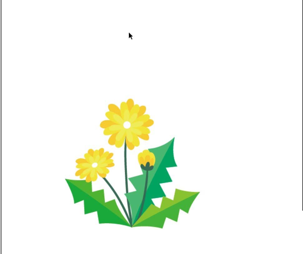6、继续填充飞翔的小花的路径,用黄色填充小花的圆形花心,用棕色填充周围的小花丝,用绿色填充花的枝干,完成卡通小花图片设计。