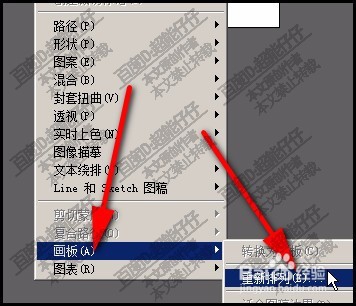 3、弹出的下拉菜单中,点:画板;再点:重新排列。