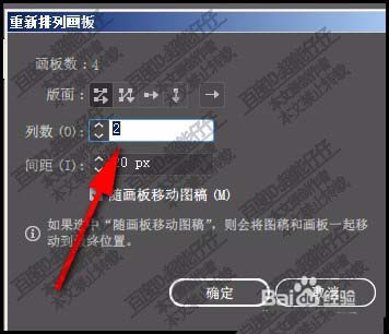4、立即出现一个设置面板:重新排列画板来,在这面板中,我们列数修改为4。