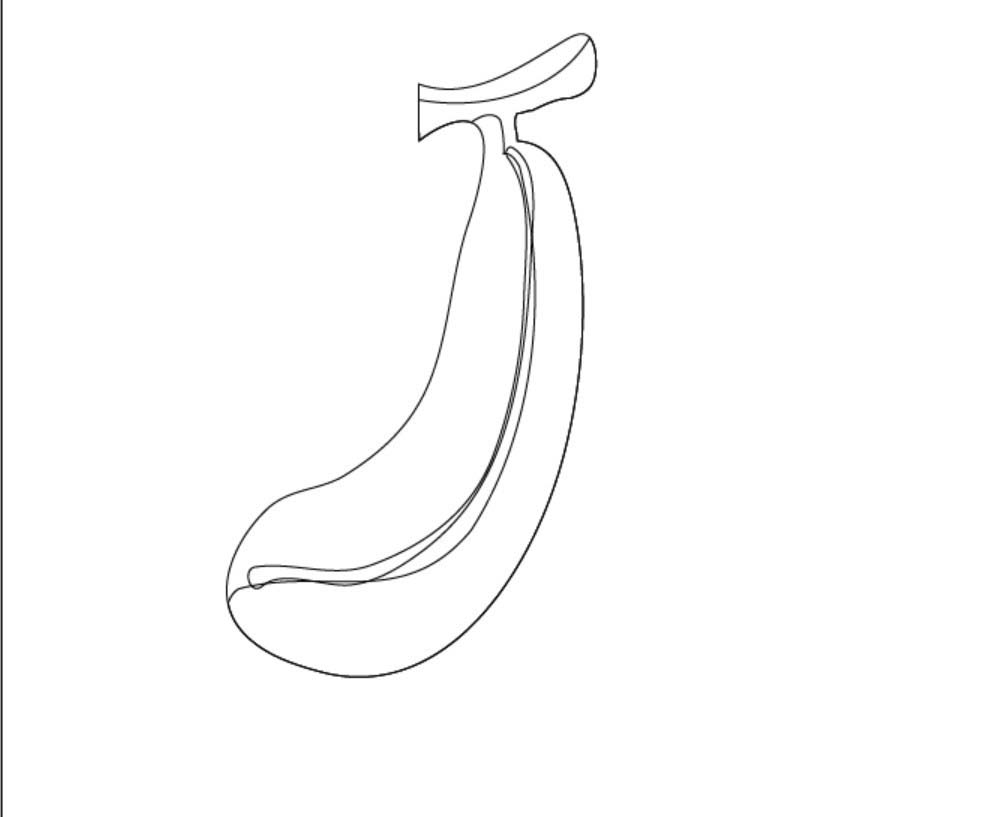 1、用路径工具画出一只香蕉的基本形状路径,注意是顶端的结头,还有香蕉本身的三种色彩的路径绘制。