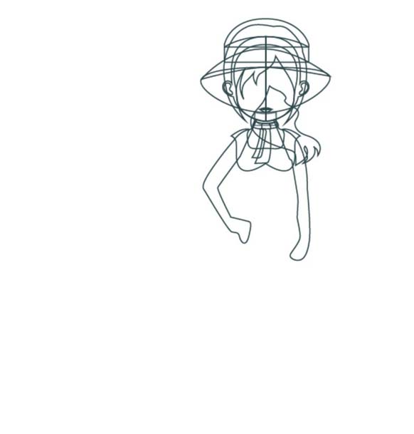 3、画出女生的裙子,女生的双腿,还有她的鞋子。