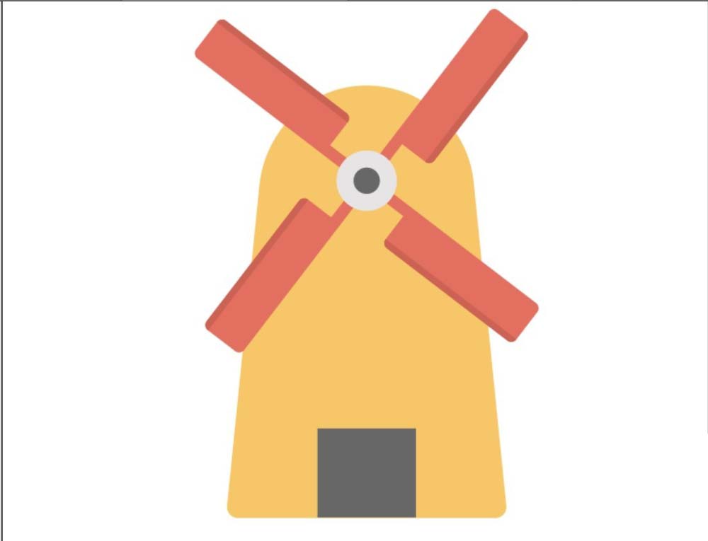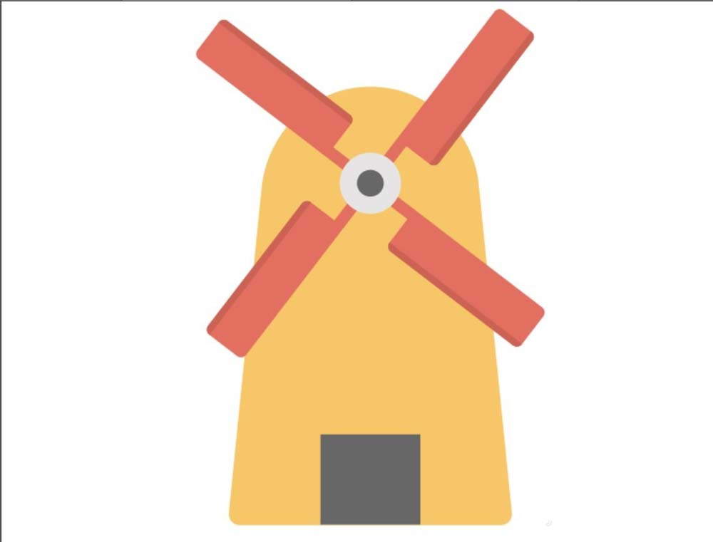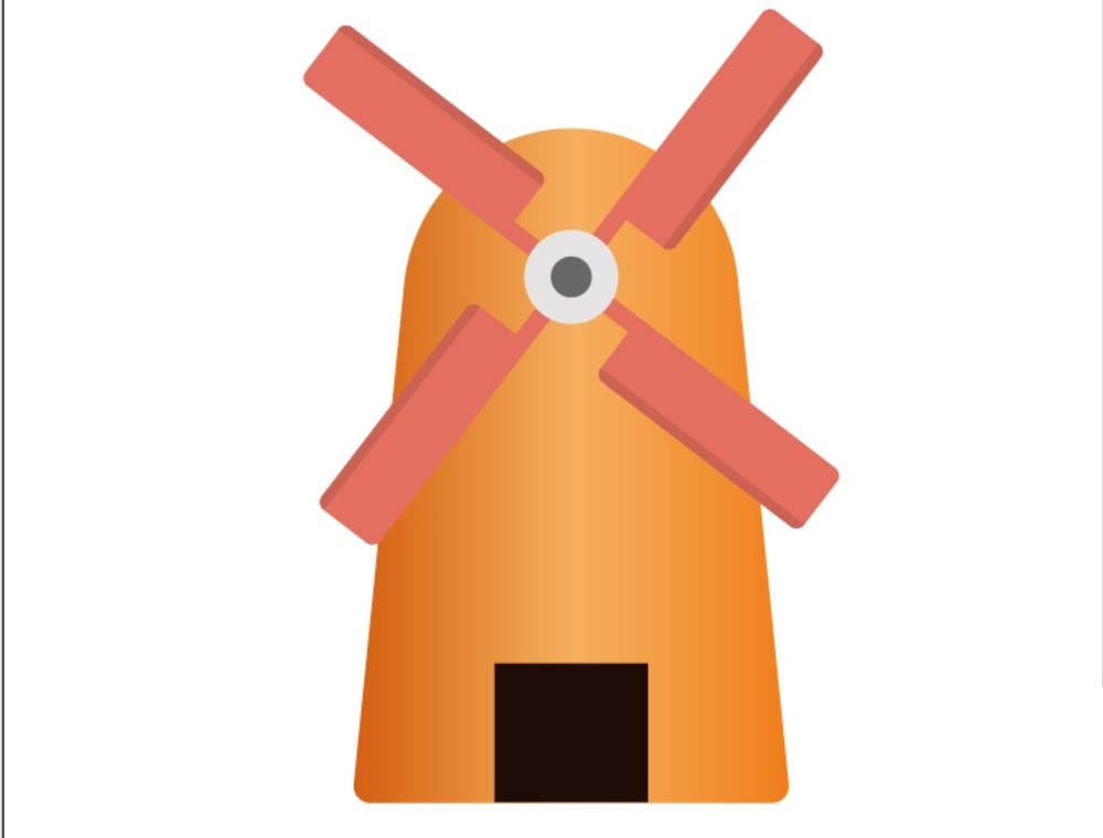 7、我们也可以设置一个三色的橙红渐变,用这个渐变色填充风车的建筑物,从而让整个画面的风格更加的独特。