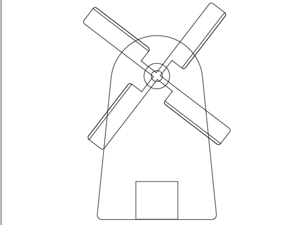 5、用灰白色与灰黑色填充风车支架上面的圆形零件。用灰黑色填充风车下方的方形小门。