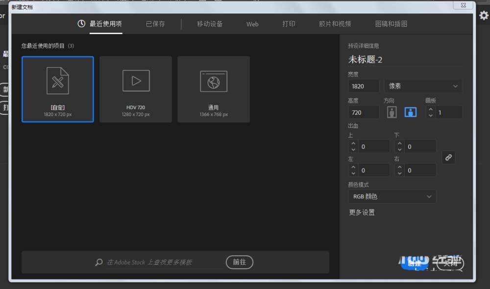 1、新建一个1820*720的文件,颜色模式为RGB。