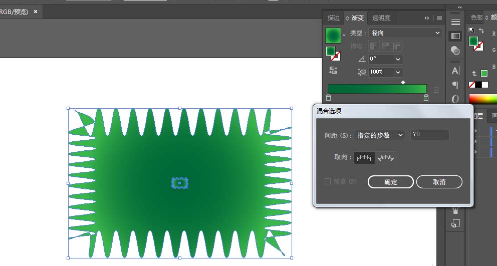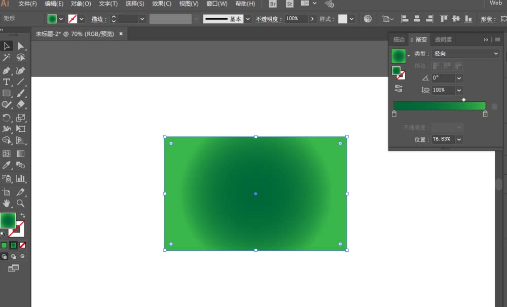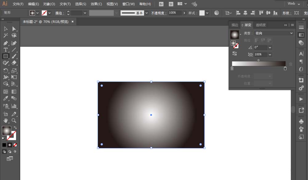 2、用矩形工具绘制长方形,改为径向渐变。