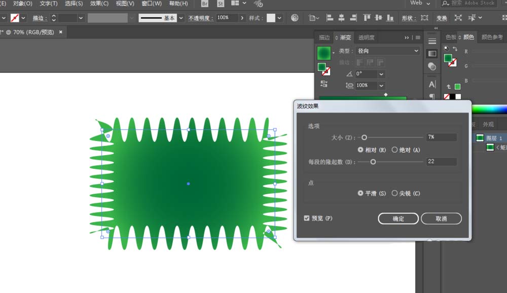 3、进入效果-波纹效果,复制一份,调整大小。