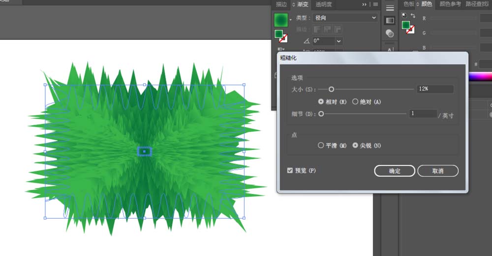5、进行粗糙化,调整一下参数,调整一下小的那一块的位置。