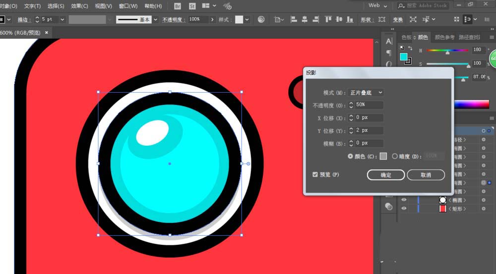 3、减去顶层,绘制高光部分,添加投影。修改不透明度。