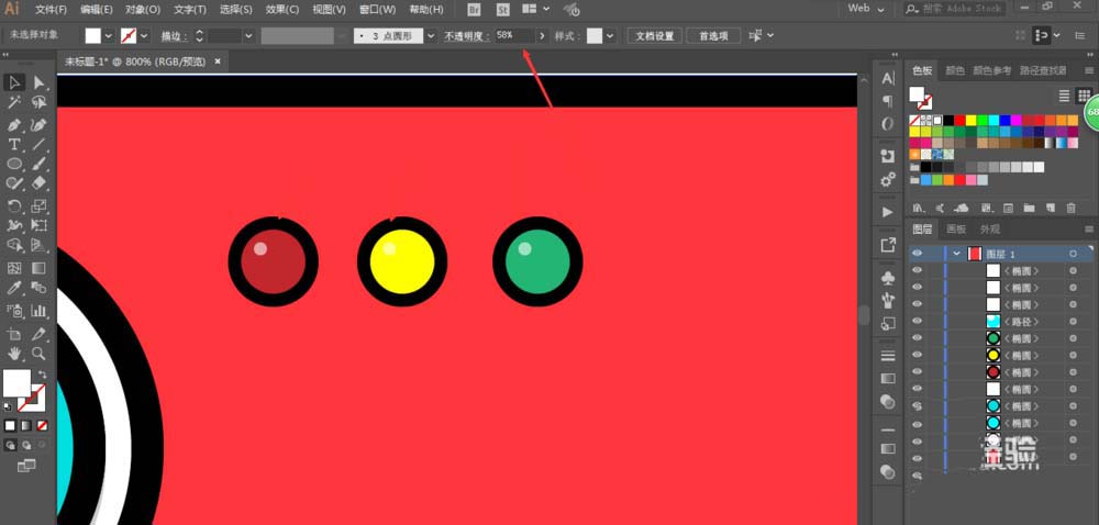 2、用椭圆工具绘制圆形,填充不同颜色。