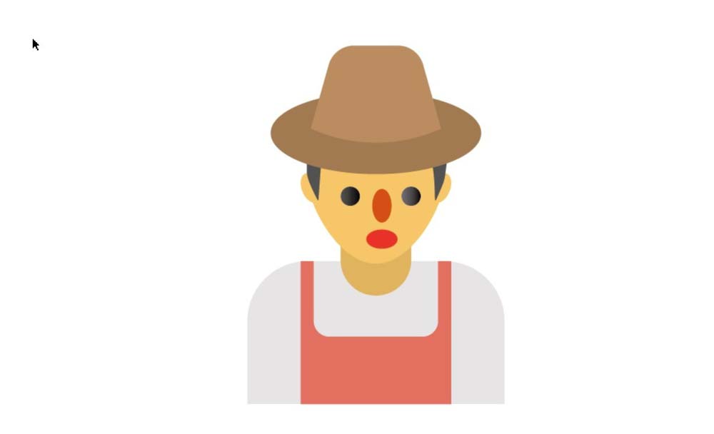 5、用土黄色填充工人的脸蛋,用黑色填充头发,用黑色的渐变填充眼晴,用橙红色填充鼻子,用红色填充嘴巴。用暗黄色填充脖子。