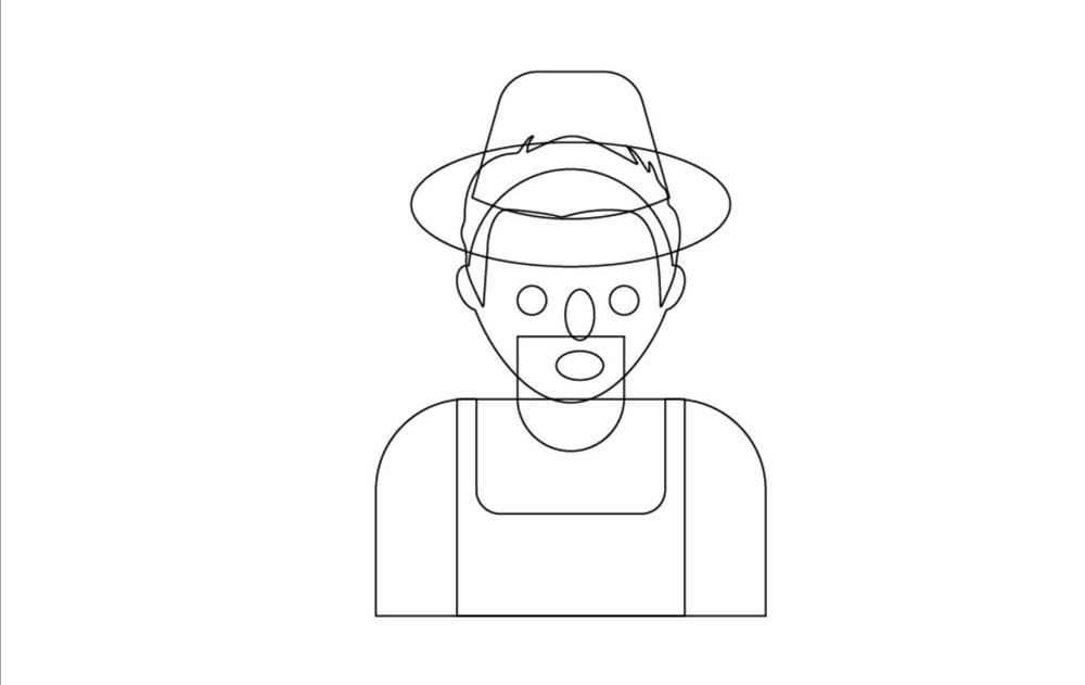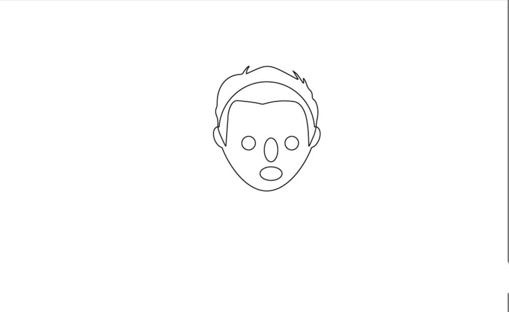 1、用曲线工具先绘制出工人的表情,它的头发、头部、眼晴、鼻子、耳朵、眼晴、嘴巴。