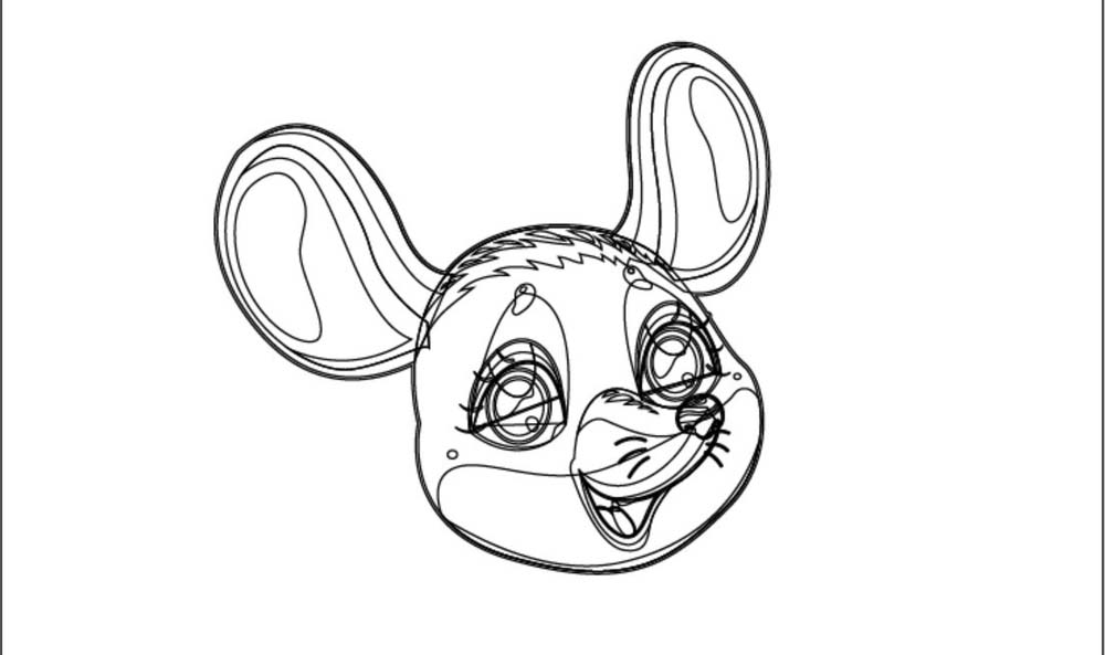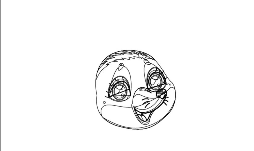 1、画出老鼠脸部的重点表情元素,它的大眼晴,它的小鼻子与小嘴巴,它的头部的轮廓路径。