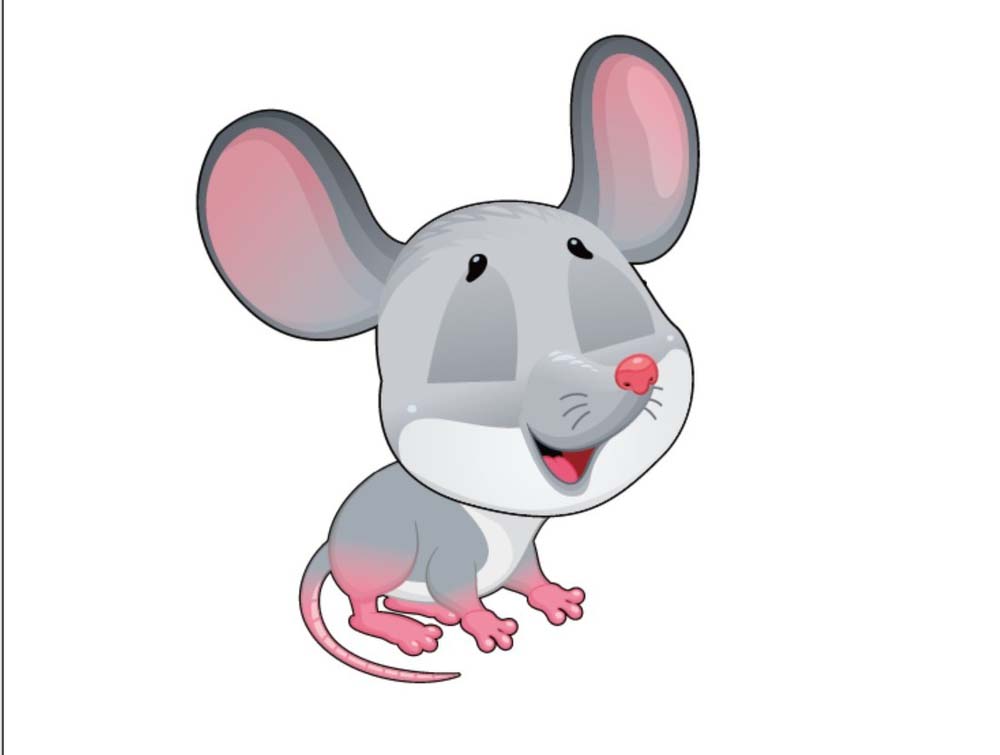 5、用灰白色的渐变填充老鼠的嘴巴区域的路径,用灰黑色填充老鼠的眼晴区域路径,用粉色到灰黑色的渐变填充老鼠不同层次的耳朵的路径。