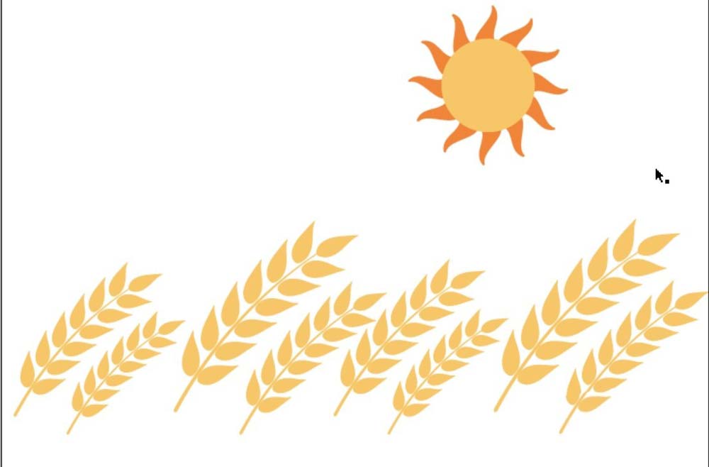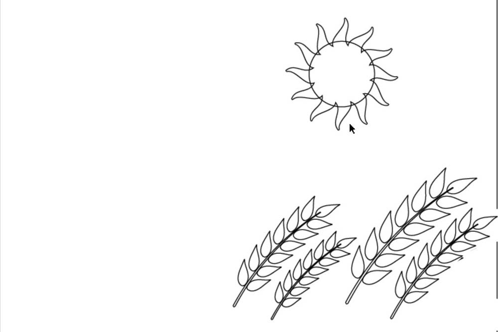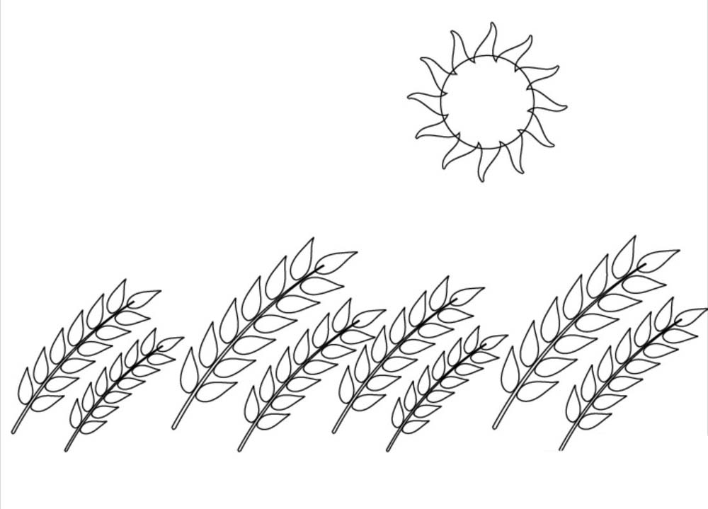 2、接着,我们再画出一棵麦子的基本轮廓,主要是麦粒与茎杆。可以把一颗复制成更多棵。