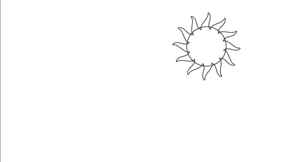 1、先画出一个太阳的基本轮廓,它在结构上分为内外两个部分。外面的曲线与内部的圆形。
