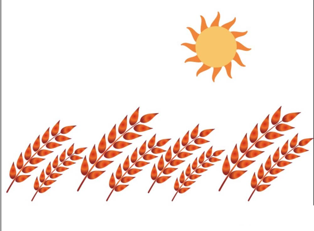 6、我们也可以让麦浪更炫一些,用橙红色的渐变填充麦浪,从而给人一种震撼的感觉,麦浪图片设计完成。