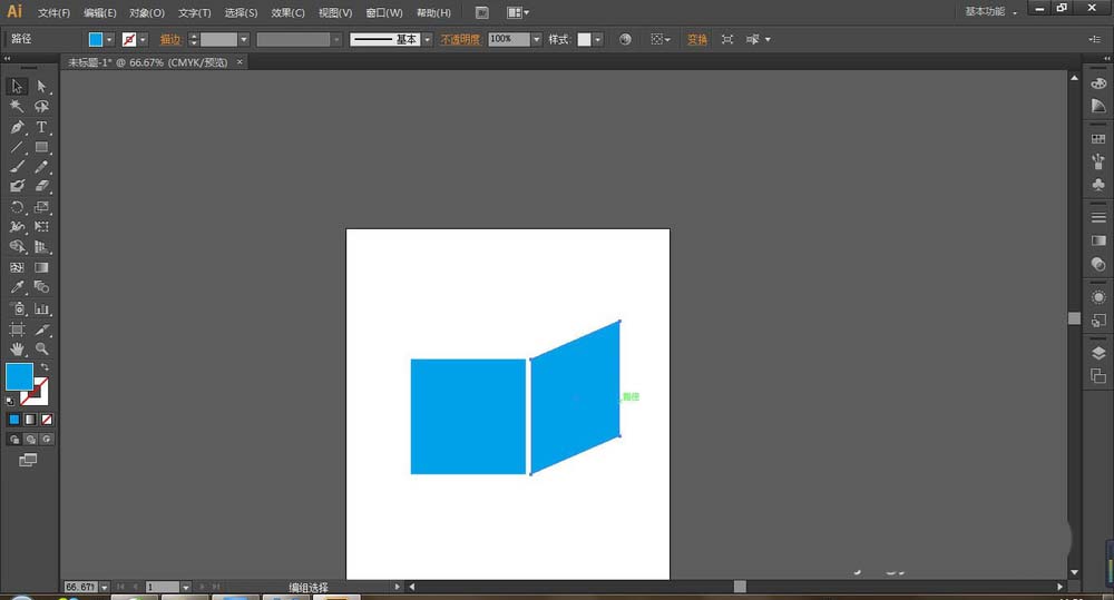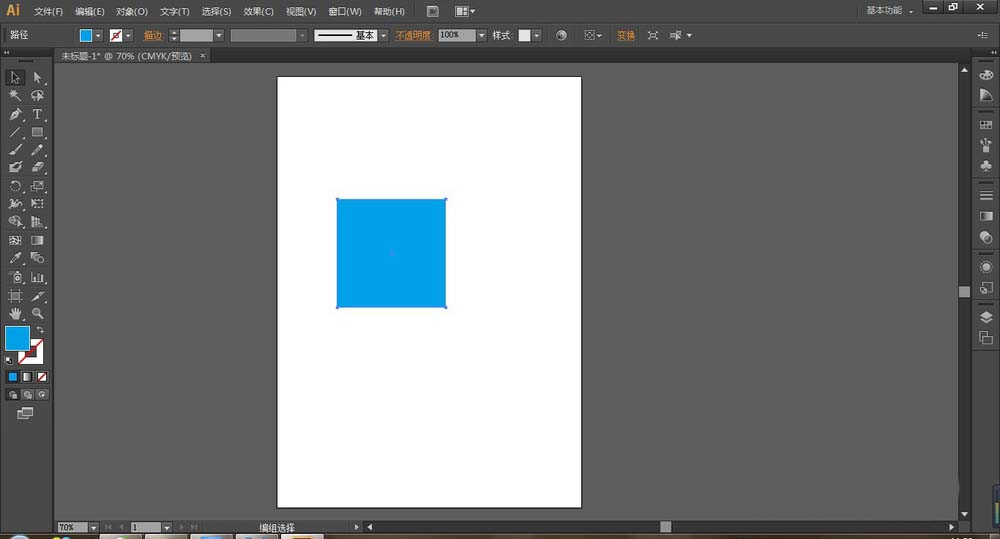 2、选择矩形工具绘制一正方形,去除描边,填充为蓝色。