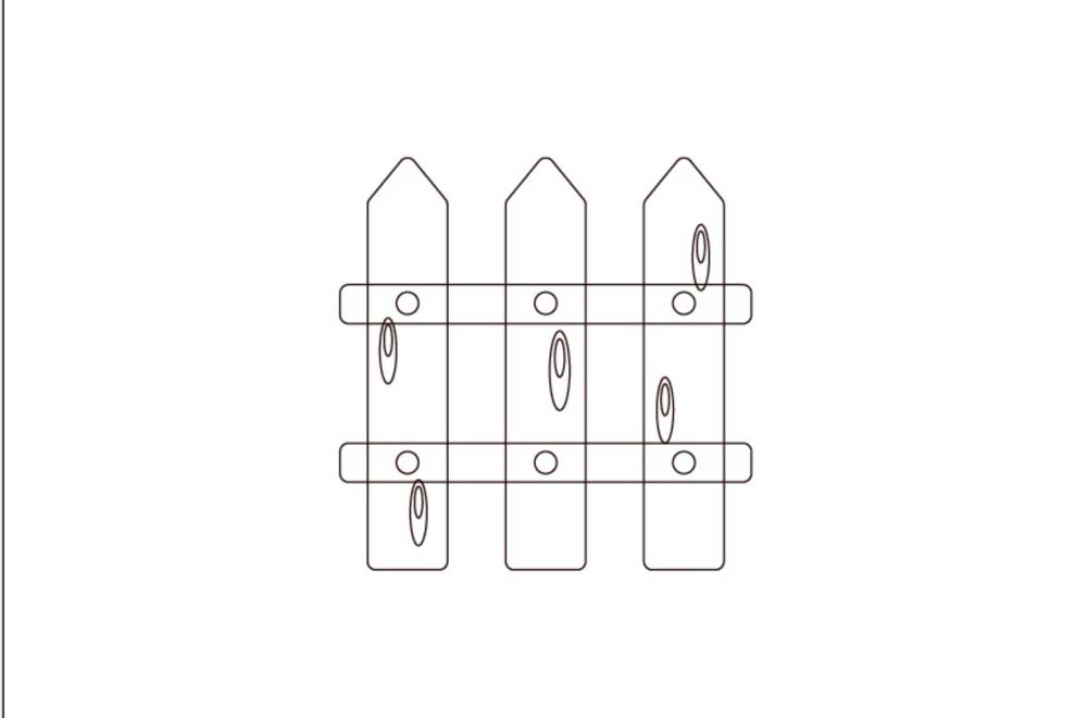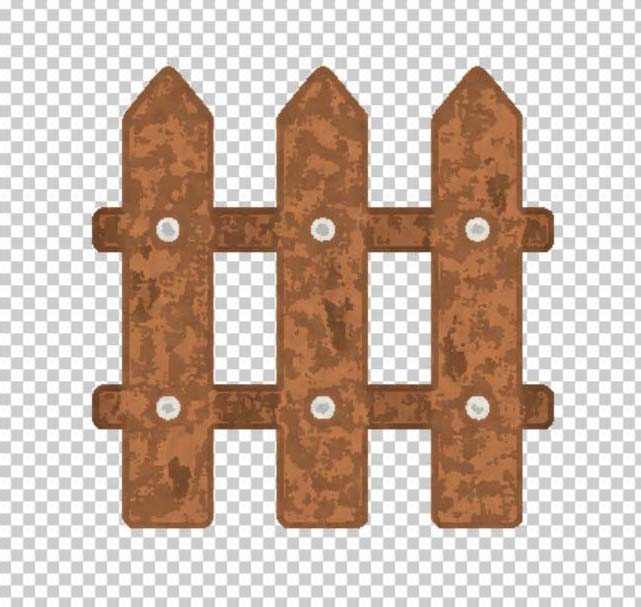 4、填充栅栏的竖立木棒为棕色,横条木棒为暗棕色,圆孔为灰白色,木棒上面的花纹为暗棕色。