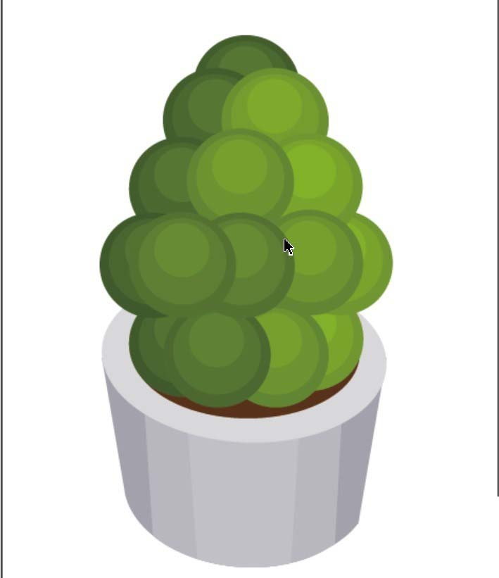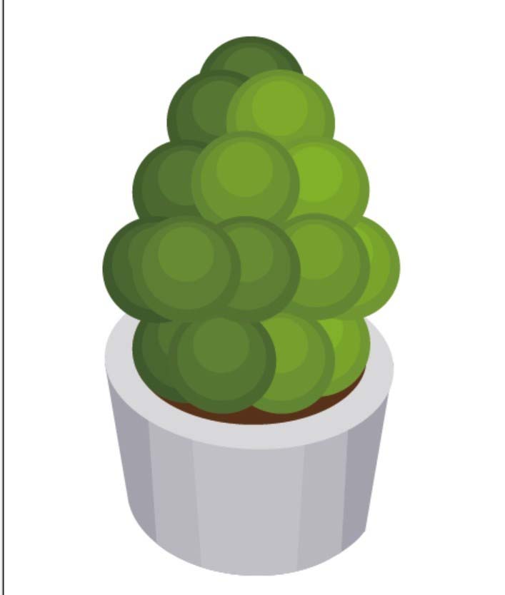6、其它的圆球体也用同样的办法进行快速的填充,从而让其成为一个茂盛的盆栽植物,完成盆栽卡通画设计。