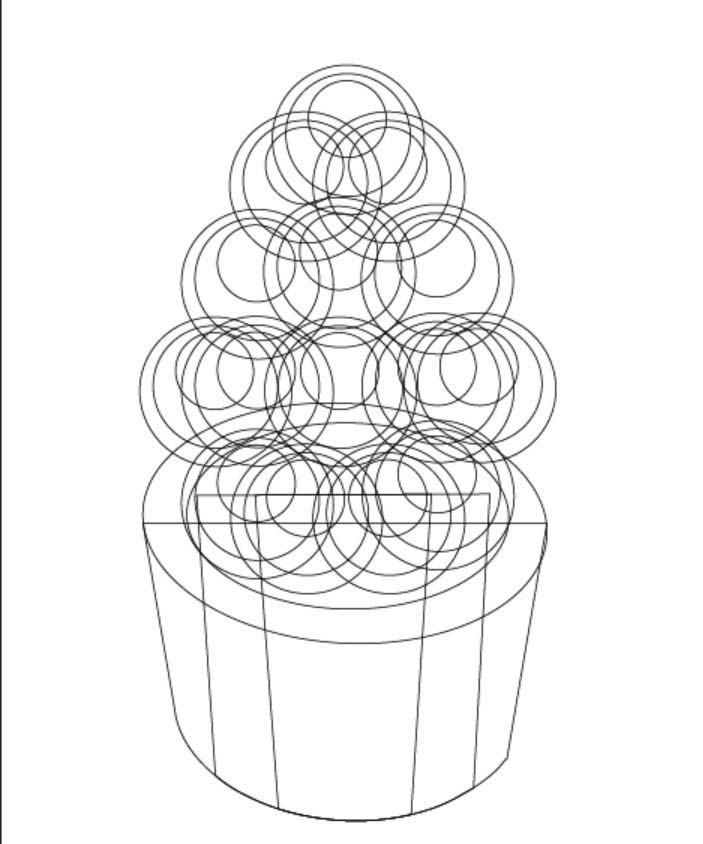 2、不断复制第一个绿色的圆形复制体,从而绘制出一棵盆栽植物的基本轮廓。