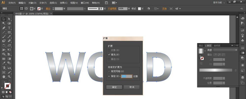 4、按Ctrl+C复制字体,按Ctrl+F原位粘贴,选择上面的字体,执行对象-扩展命令。